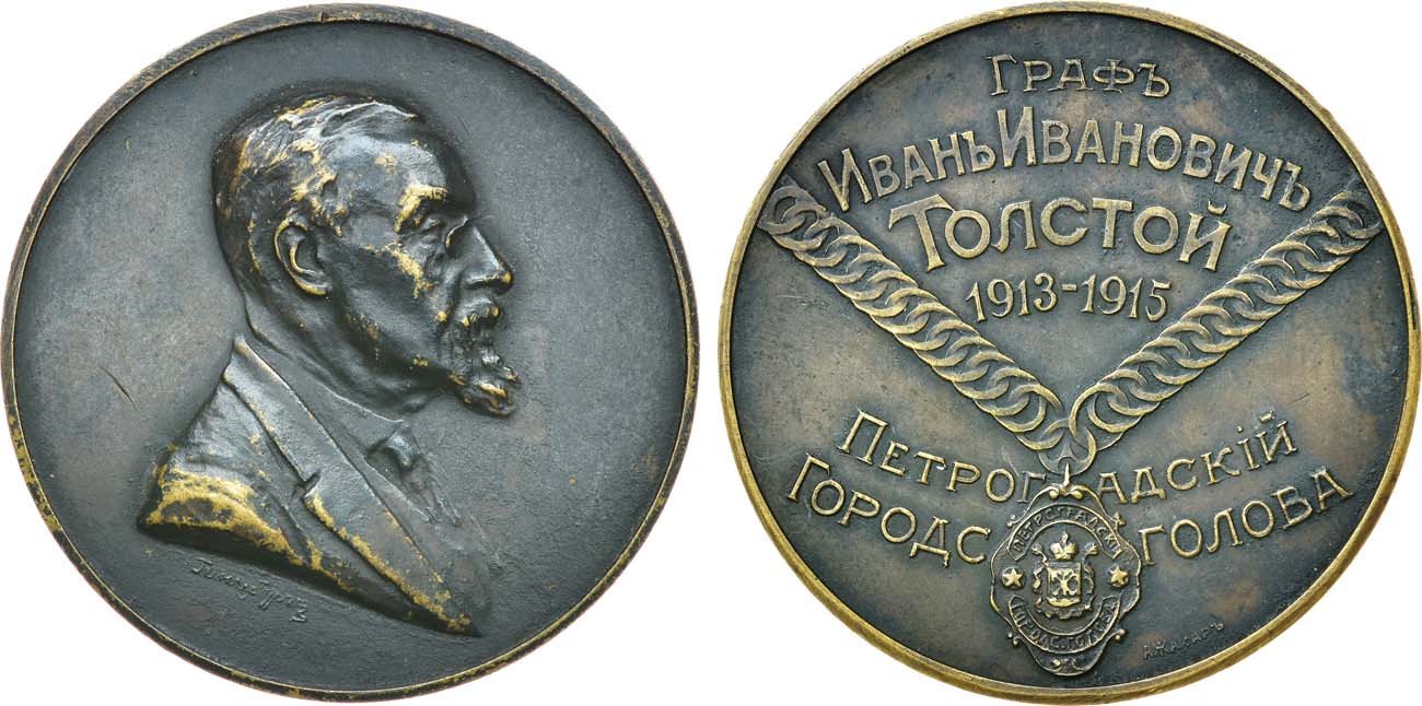 Бронза. 30,99г. Диаметр 39 мм. Санкт-Петербург. Мастерская А. Жакара. Медальер И. Гинцбург (на аверсе под портретом "Гинцбург"). Дьяков 1587.1(R2). AU 58.