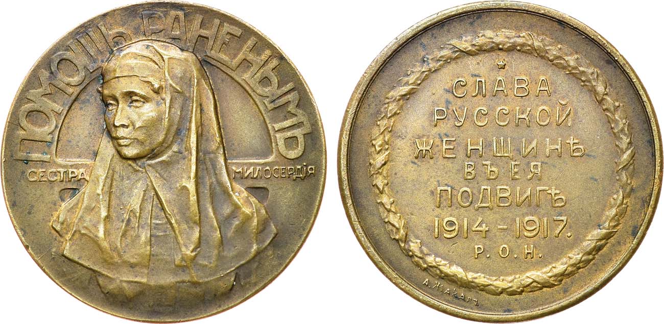 Бронза. 14,84г. Из серии медалей Российского Общества нумизматов в память Первой мировой войны 1914–1918 гг. Петроград. Диаметр 33 мм. Мастерская (ателье) А.Ф.Жакара (реверс: внизу левее у окружности: "А Жаkаръ"). Медальер Г.И.Малышев (без подписи). Дьяков 1593.1(R1). UNC.