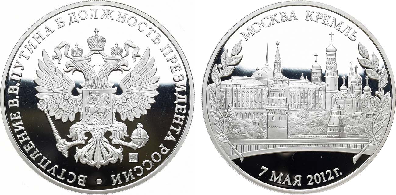 Серебро. 67,25г. Диаметр 50,2 мм. Санкт-Петербургский монетный двор. На реверсе под державой клеймо: "СПМД, женская голова в кокошнике │ Ag-925 │ 67,25г». Без подписи медальера. Гурт рубчатый. PROOF.
