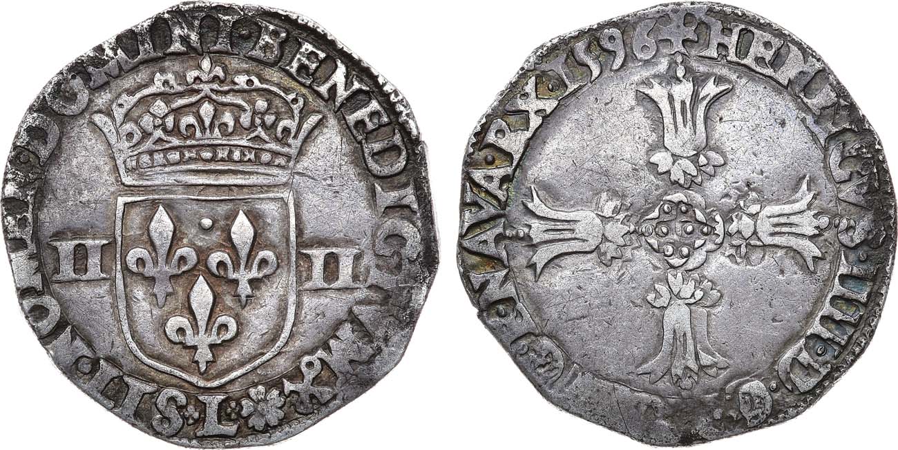 Серебро. 9,22г. Байонна. Аверс: круговая легенда "HENRICVS. IIII. D: G. FRANC. ET. NAVA. RX 1596". Реверс: круговая легенда ".SIT. NOMEN. DOMINI BENE.DICTVM." XF.