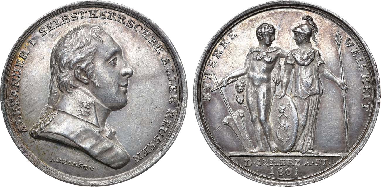 Серебро. 31,19г. Диаметр 34 мм. Пруссия, Берлинский королевский монетный двор. Медальер А. Абрамсон (аверс: внизу под портретом "ABRAMSON"). Дьяков 262.2(R2). UNC.