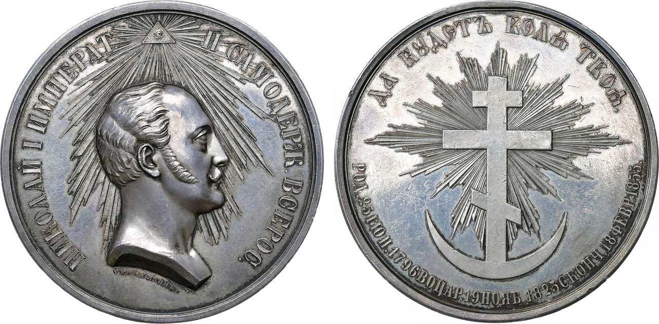 Серебро. 160,26г. Диаметр 68 мм. Санкт-Петербургский монетный двор. Медальер А.П. Лялин (аверс — под изображением на фоне: "РЕЗ.А.ЛЯЛИНЪ."). Смирнов 557. Дьяков 613.1(R2). AU/UNC.