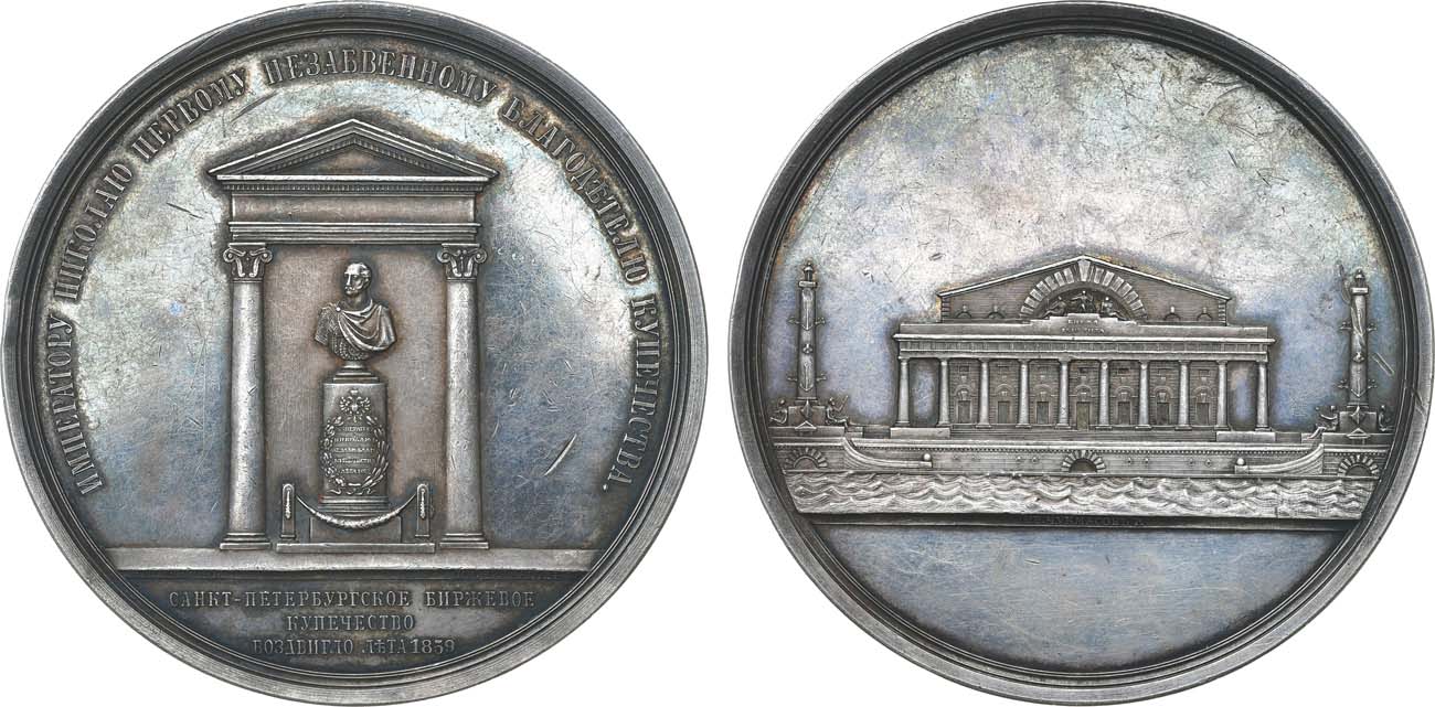 Серебро. 147,88г. Диаметр 78 мм. Санкт-Петербургский монетный двор. Медальер И.И. Чукмасов (на аверсе слева на линии обреза "Н.ПИМЕНОВЪ.", справа на линии обреза "ИВ.ЧУКМАСОВЪ Р."; на реверсе на линии обреза на 6 часов "ИВ.ЧУКМАСОВЪ Р."). Смирнов 622. Дьяков 682.1(R3). AU/UNC.