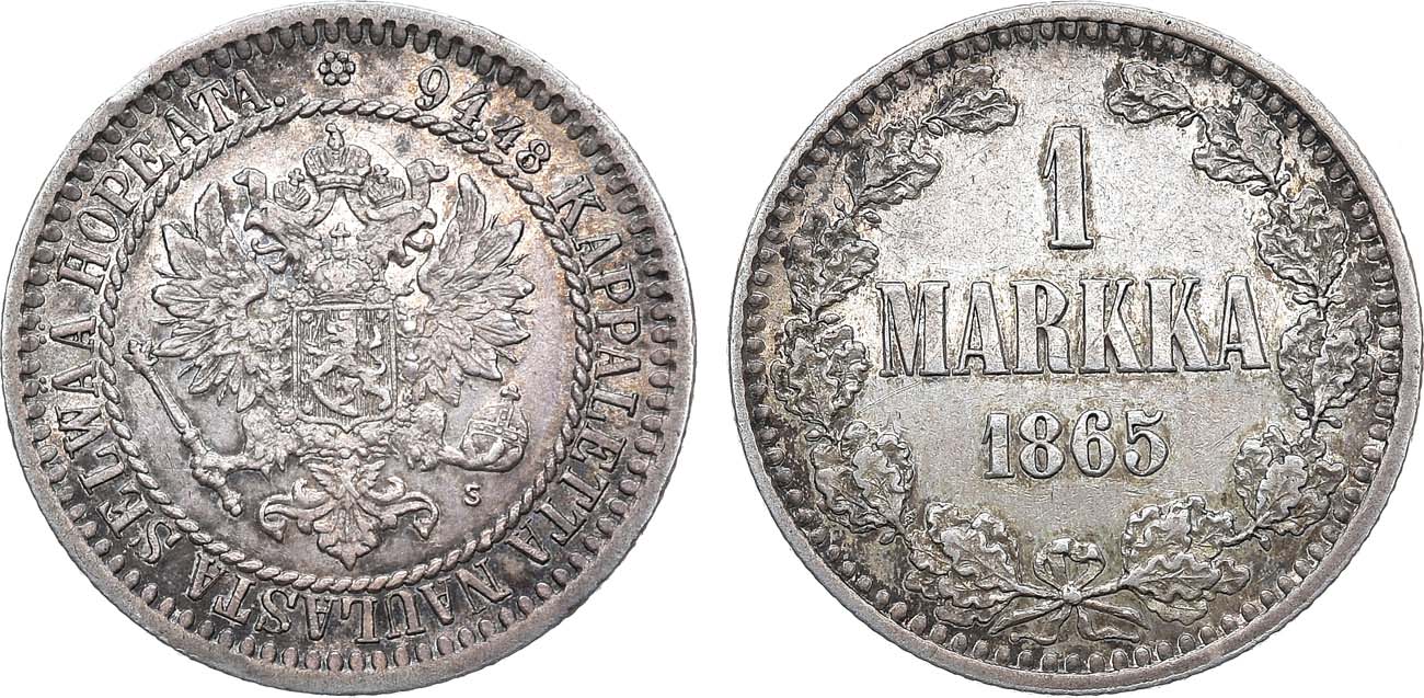 Серебро. 5,08г. Для Финляндии. Гельсингфорсский монетный двор. Уздеников 4658. Биткин 625. AU/UNC.