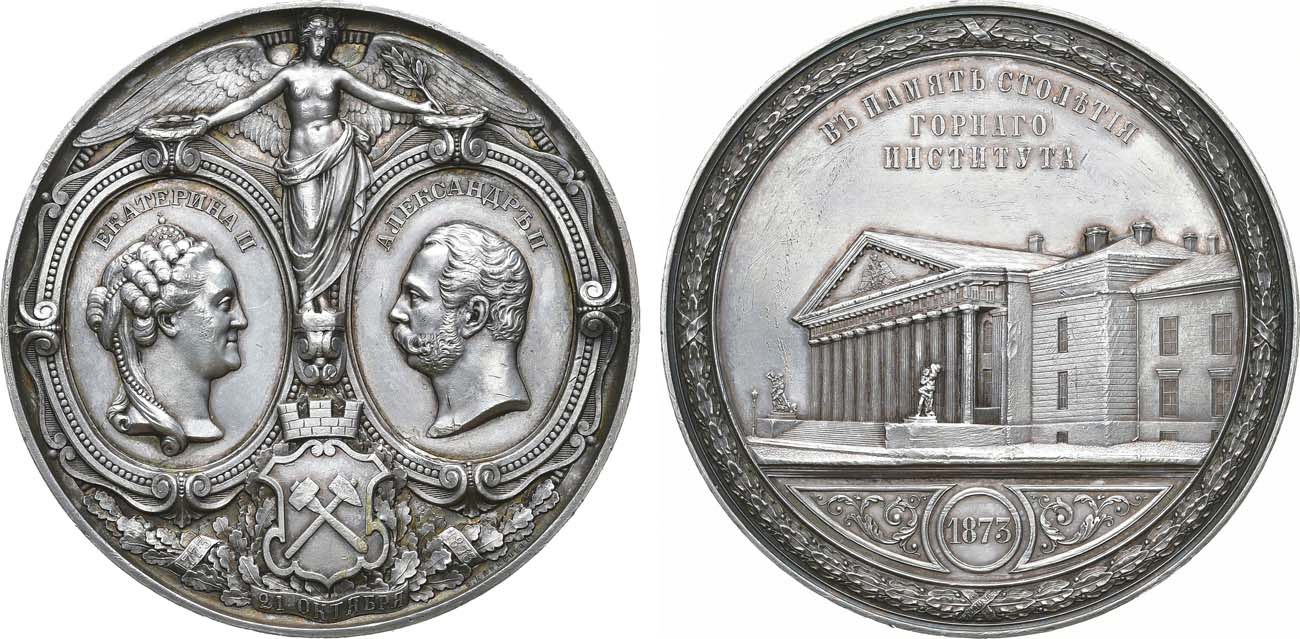 Серебро. 214,58г. Диаметр 79 мм. Санкт-Петербургский монетный двор. Аверс: медальер В.В. Алексеев (справа на фоне у окружности: "В.АЛЕКСѢЕВЪ".); реверс — А.Г. Грилихес (отец) (внизу на перевязывающей венок ленте: "А. / ГРИЛИХЕСЪ / РѢЗ"). Смирнов 723. Дьяков 802.1(R3). UNC.