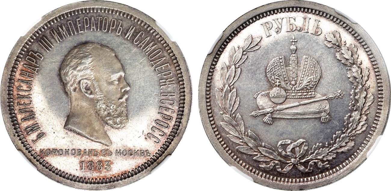 Серебро. Чеканен в честь коронации Императора Александра III. Уздеников 4188. Биткин 217. Казаков 606(R). PF 62.
