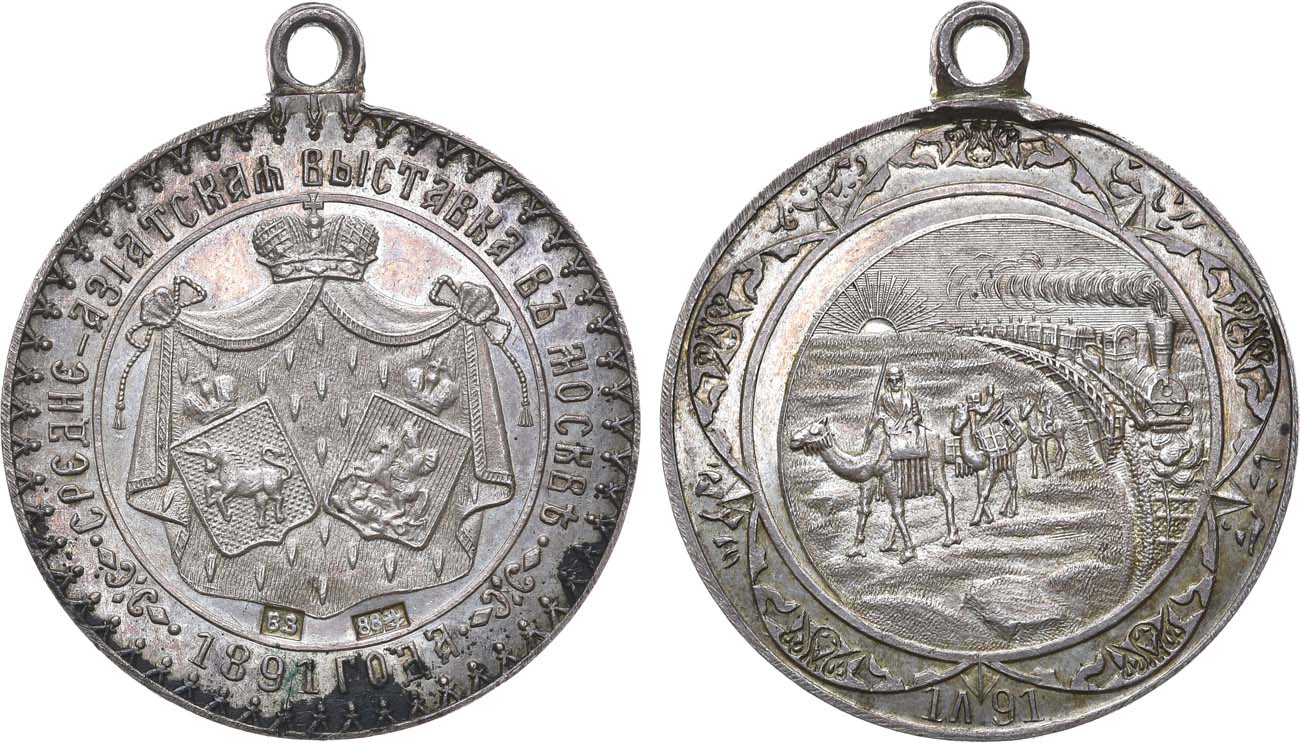 *жетон описан в каталоге без ушка. По мнению автора журнала "Нива", выставка стала "великим торжеством - результатом долголетних и громадных усилий, положенных на дело распространения культуры в таких пустынях и уголках Средней Азии, в которых 40-50 лет назад не дерзал проникать ни один европейский путешественник".