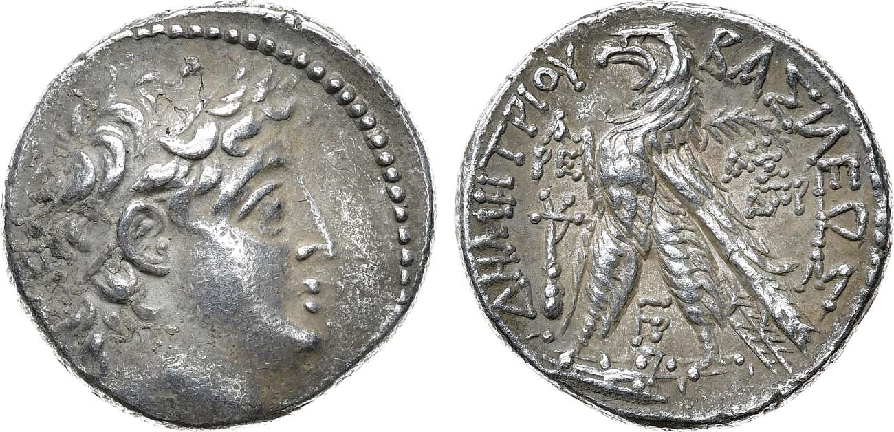 Серебро. 14,09г. Аверс: портрет царя - вправо. Реверс: круговая легенда "BAΣIΛEΩΣ ΔHMHTPIOY"; изображение орла - влево. XF.