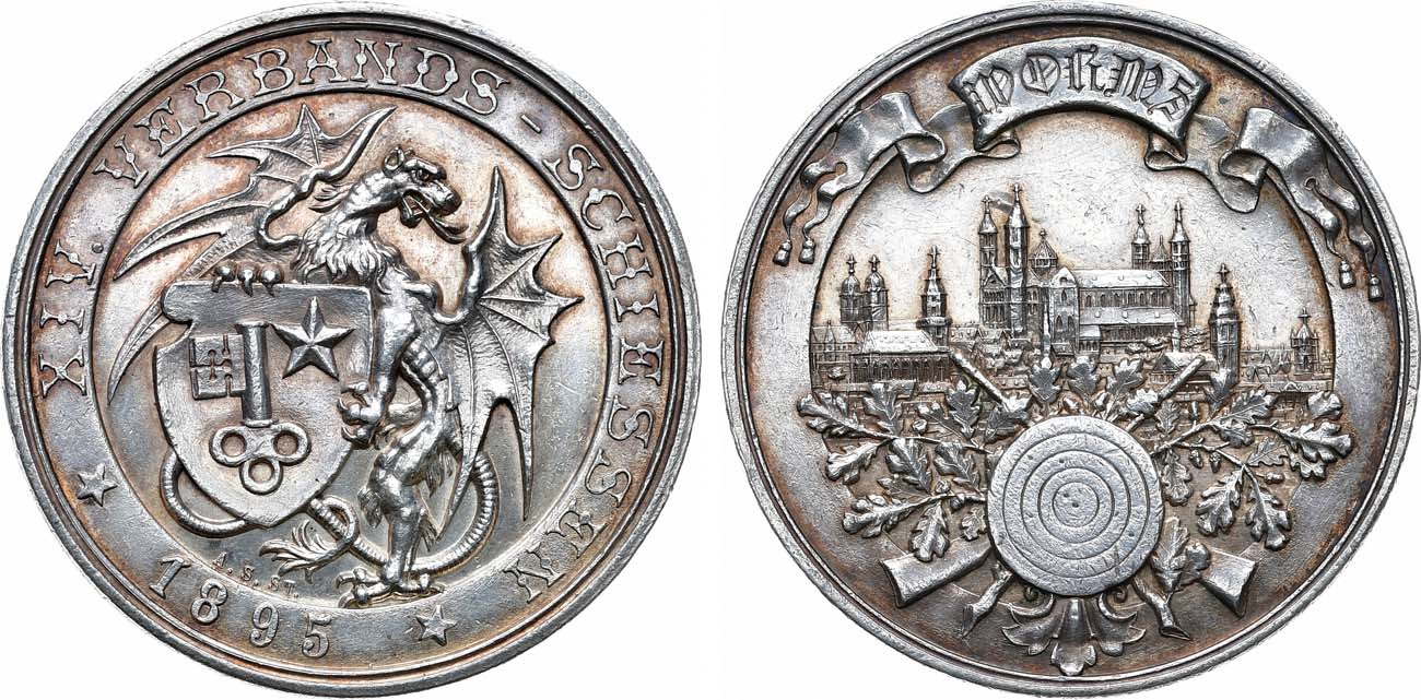 Серебро. 26,41г. Диаметр 39 мм. Штутгарт. Медальер Адольф Швердт ( Реверс на "7"-и часах под щитом "A. S. ST.". Тираж: 382 экз. Peltzer 1748. AU.