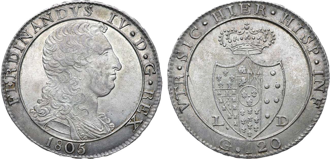 Серебро. 27,58г. Неаполь (LD). KM 247, MIR 423.. AU 58.