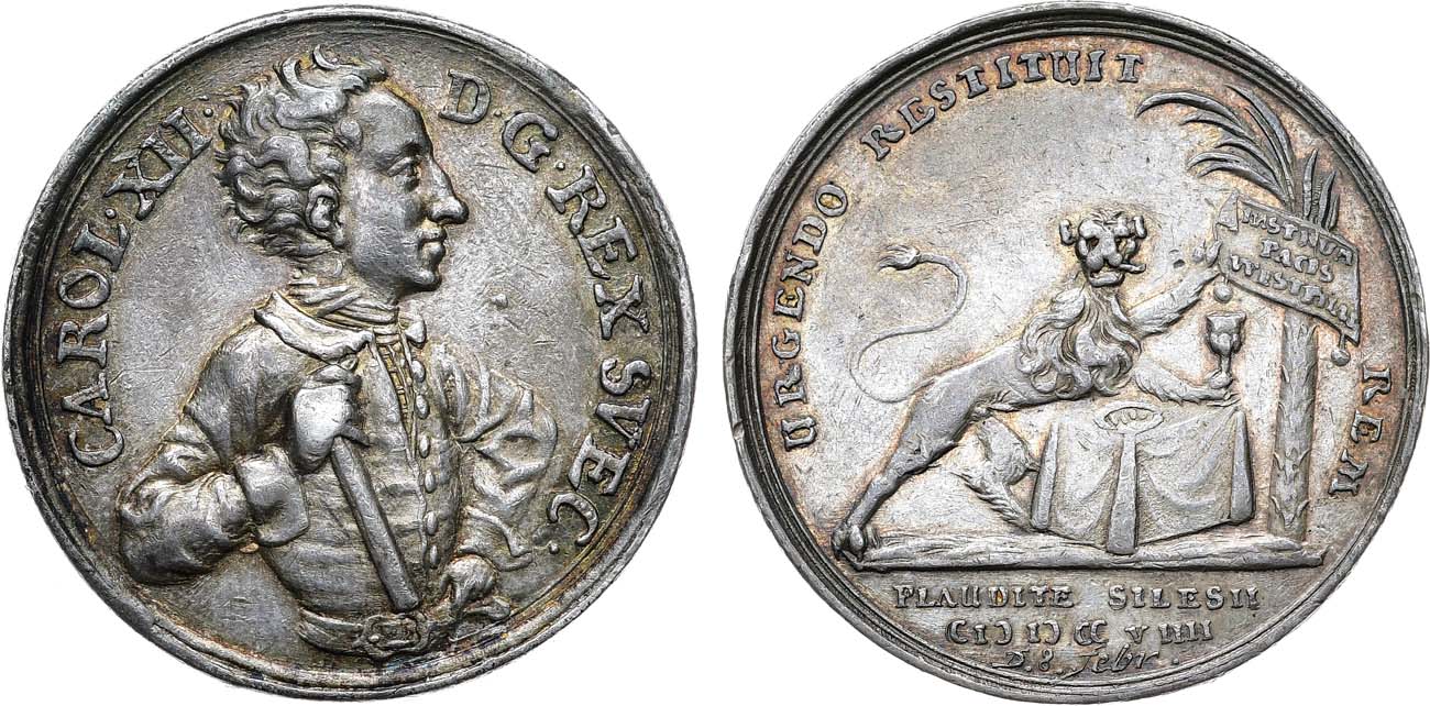 Равномерный штемпельный блеск. Насыщенная светлая золотисто-серая патина. Редка.