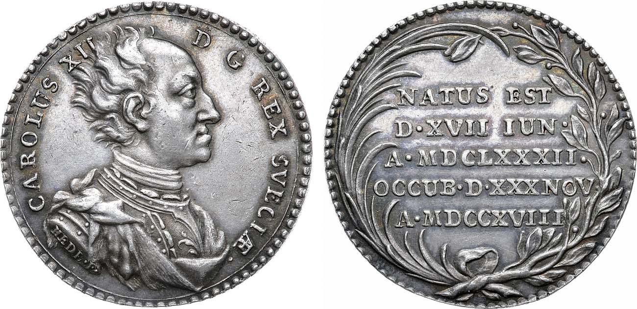 Серебро. 13,61г. Стокгольм. Диаметр 32 мм. Медальер Иоганн Карл фон Хедлингер ("HEDT•F•" - на аверсе в обрезе рукава). Hildebrand 199. AU 58.