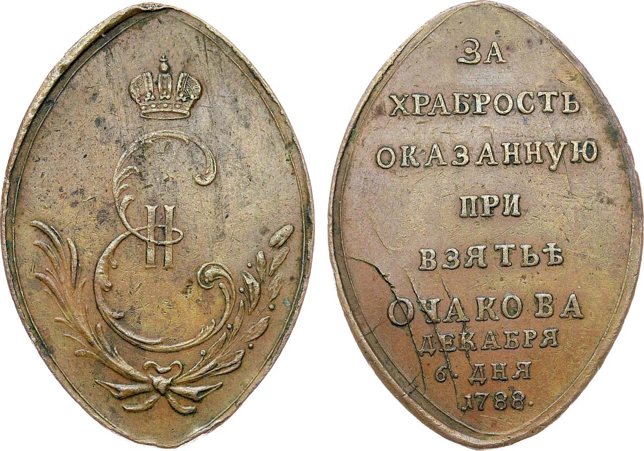 Учреждена 14 апреля 1789 г. Медалью награждали нижних чинов и рядовых русской армии, принимавших участие в штурме и взятии крепости Очаков 6 декабря 1788 г.