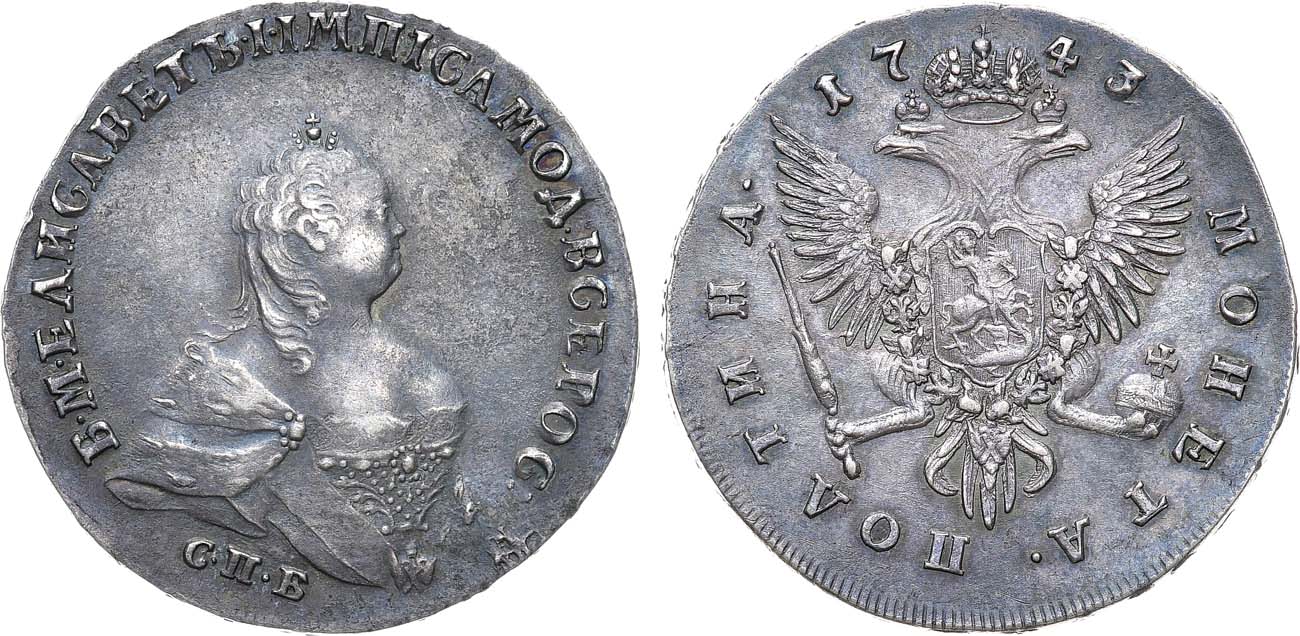 Полтины 1743 года с "поясным" портретом чрезвычайно редки на практике в подобной высокой степени сохранности.