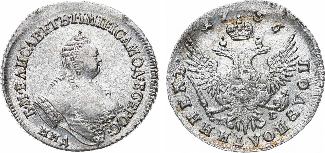 Серебро. 5,89г. Красный монетный двор. Аверс: "ММД", в конце круговой надписи двоеточие. Уздеников 0888. Биткин 177. 75 копеек по Петрову. Дьяков 105, 402. MS 60.