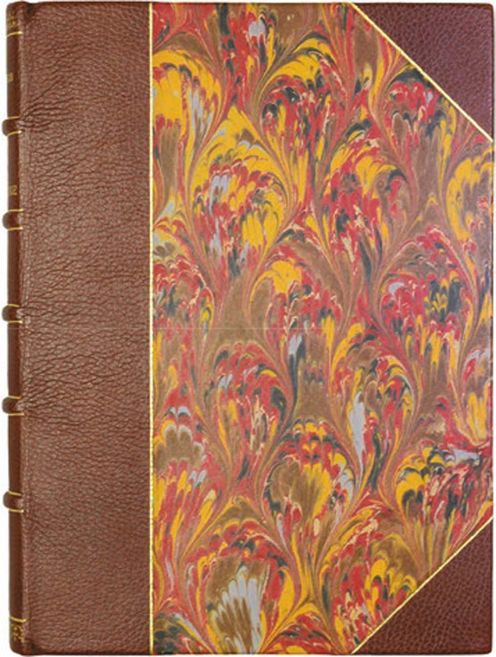 Составной кожаный переплет с муаровой бумагой. Золотое тиснение обложки и корешка. Отличное состояние. Очень редка.