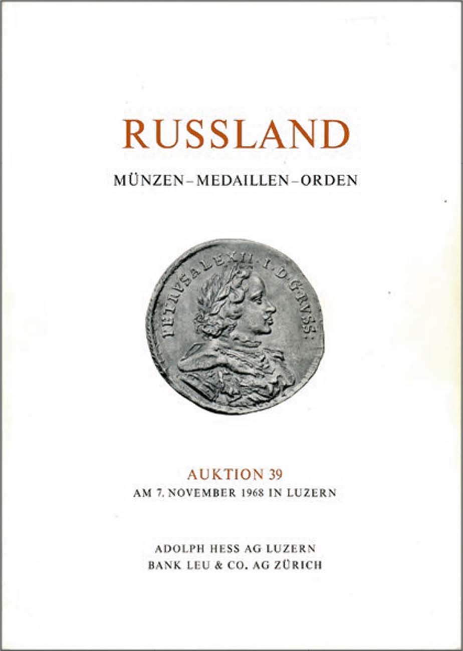 Люцерн. Швейцария, 7 ноября 1968 года. 590 лотов русских монет из знаменитой коллекции Леонида Содермана. 24 таблицы изображений высокого качества редких и уникальных монет.