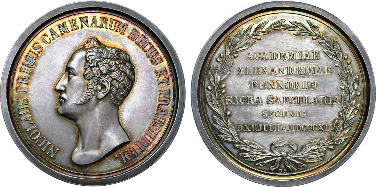 Серебро. 82,38г. Диаметр 58 мм. Санкт-Петербургский монетный двор. Медальеры Г. Губе (на аверсе в обрезе шеи: "GUBE.FEC."), Г.И. Сабуров (на реверсе на поле под венком "СА."). Смирнов 506. Дьяков 559.1(R3). AU.