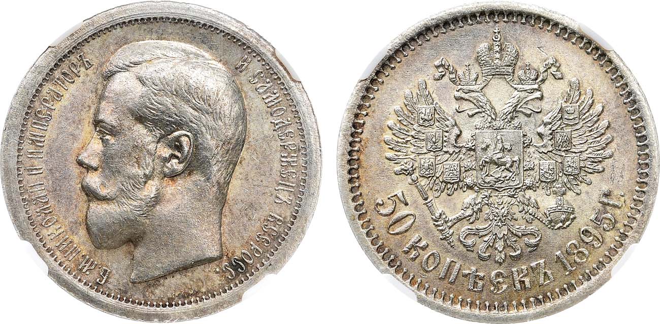 Полтинники раннего периода правления императора Николая II в превосходной штемпельной сохранности встречаются особенно редко из-за их длительного нахождения в обороте и представляют значительный коллекционный интерес.