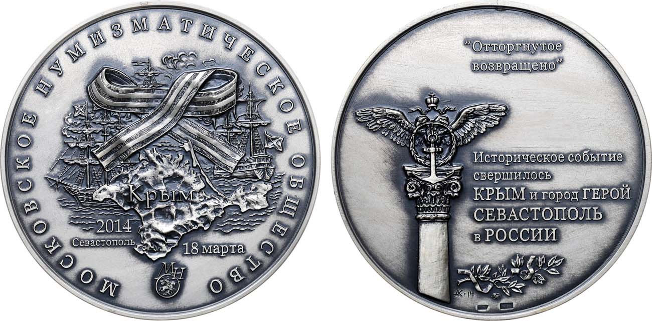 Серебро 925 пробы. 206,88г. Диаметр 70 мм. Московский монетный двор. Медальер А.С. Карташов (на реверсе под лавровой ветвью "АК-14", пробирные клейма ММД и Московского отделения пробирного надзора.). UNC.
