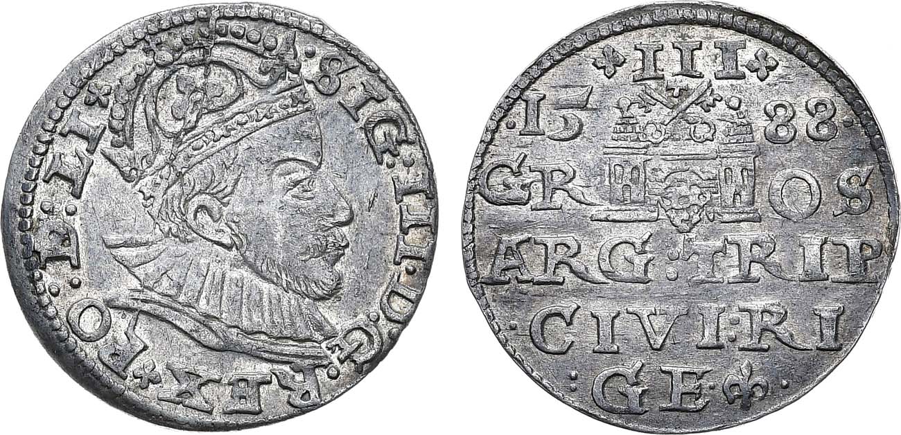 Серебро. 2,24г. Рига (GE). Первый год чеканки. Kopicki 8177. AU.