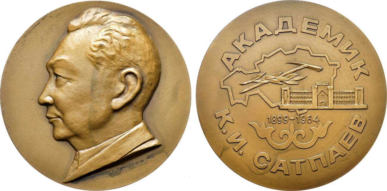 Томпак. 128,16г. Диаметр 60 мм. Ленинградский монетный двор. Медальер Т.А. Ахметбеков (на аверсе под бюстом "Т.А. Ахметбеков"). Тираж 100 экз. Шкурко, Салыков 1878. UNC.