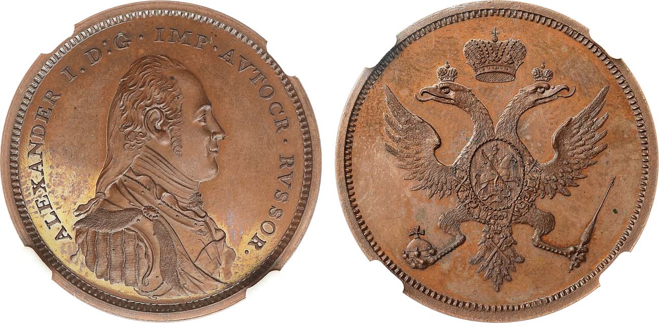Великолепный коллекционный экземпляр в исполнении PROOF. Зеркальные поля. Безупречный чёткий матовый рельеф. Красивая коричневая кабинетная патина с лёгкими золотистыми оттенками на реверсе. Очень редка, особенно в подобном исполнении. Достойна нумизматической коллекции высокого уровня.