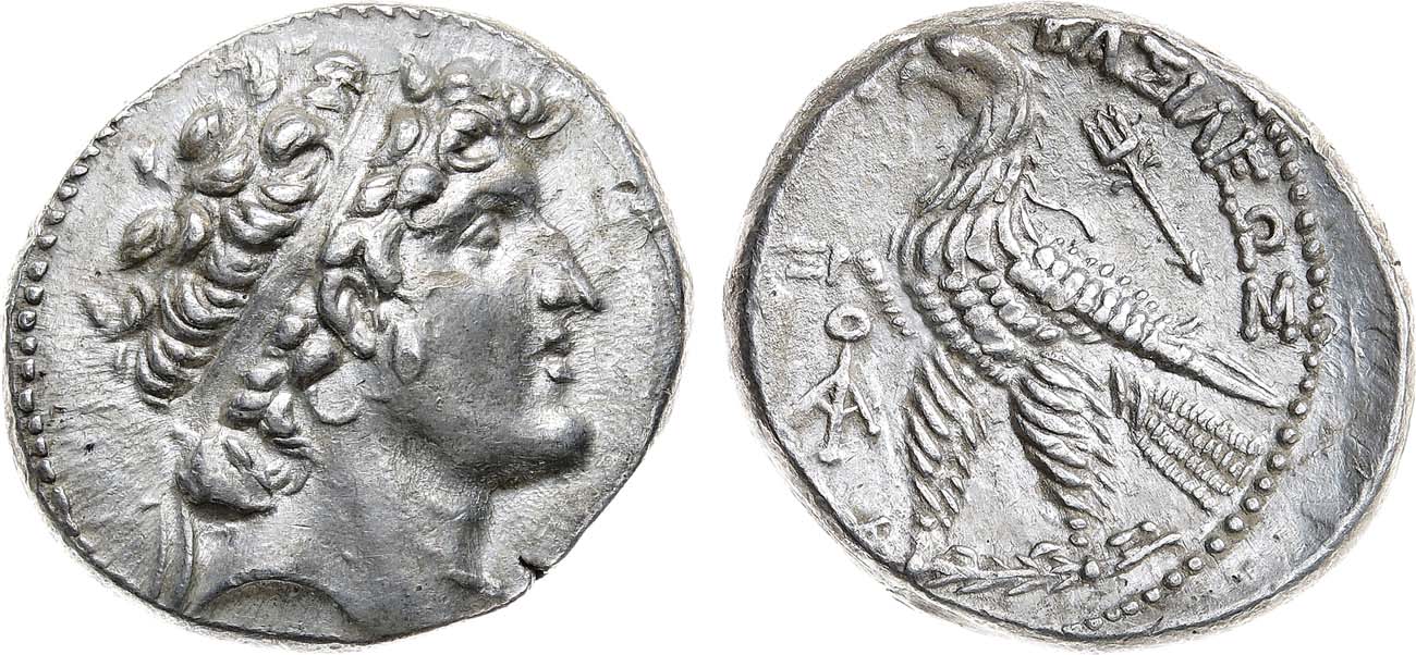 Серебро. 14,24г. Берит. Аверс: портрет Александра I в диадеме вправо. Реверс: легенда "BAΣIΛEΩΣ — AΛEΞANΔPOY"; изображение орла - влево на пальмовой ветви. Sawaya 37-44 var. SC 1824.4. AU/UNC.