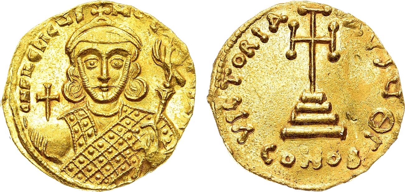 Золото. 4,33г. Константинополь. Аверс: круговая легенда "αN FILEPICЧS-MЧLTЧS AN"; портрет императора анфас с короткой бородой, в короне и лоре; в его правой руке - держава с крестом, в левой - скипетр с навершием в виде орла, увенчанного крестом. Реверс : круговая легенда VICTORIA-AVГѲ Г"; оффицина "Г" в конце круговой легенды; изображение Креста на 3 ступенях; внизу "CONOB". Sear 1449. Sommer 18.2. UNC.