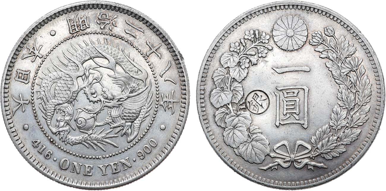 Серебро. 27г. Осака. Реверс: экспортная контрамарка. KM Y A25. AU/UNC.