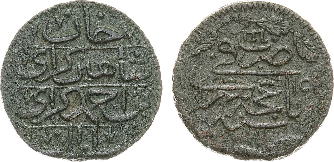 Медь. 3,82г. Бахчисарайский монетный двор. Аверс: Венок из 11 листьев без усиков, по часовой стрелке. Сариев 442. AU.