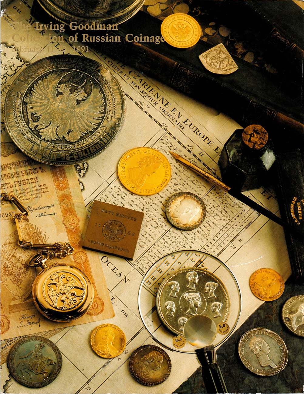 Беверли-Хиллз. 11-12 февраля 1991 года. 1767 лотов. Продажа русских монет из коллекции знаменитого нумизмата Ирвина Гудмана, результат его 30-летних поисков лучших по сохранности монет по всему миру. Много новоделов и монет в исполнении proof.