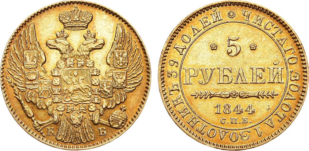 5 рублей 1844 года с орлом образца 1843-1844 гг встречаются очень редко.