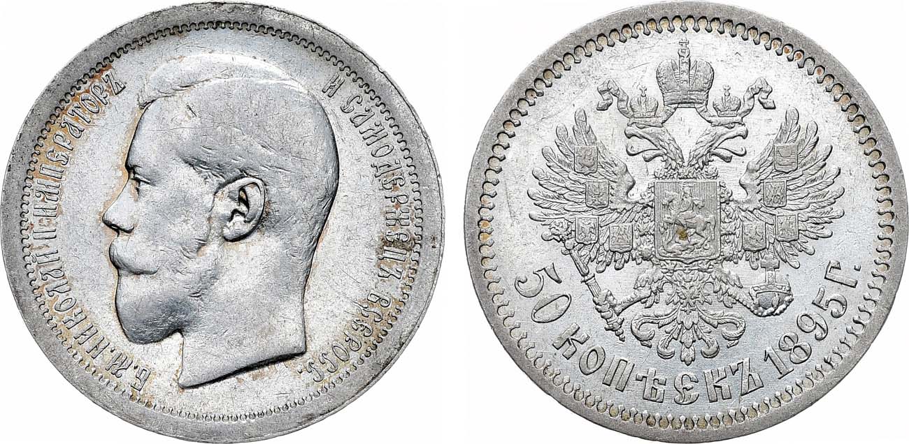 50 копеек 1895 года встречаются довольно редко.