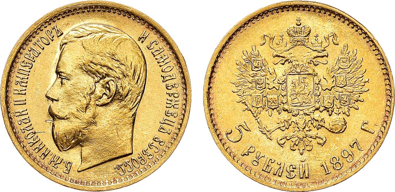 Золото. 4,3г. Аверс: штемпель 1897 года, большая голова. Уздеников 0326. Биткин 18. Казаков 73(R). UNC.