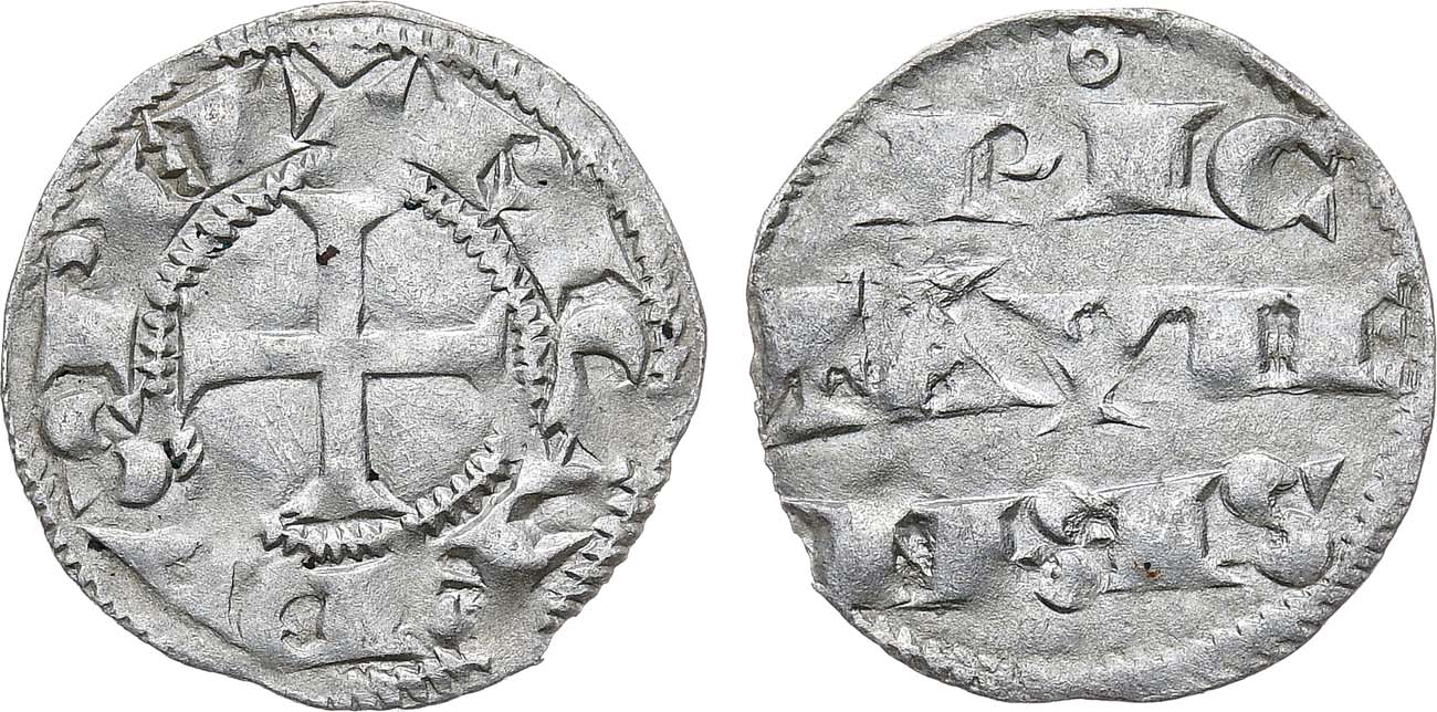 Серебро. 0,86г. Пуату. Аверс: изображение креста; круговая легенда "+ RICARDVS REX". Реверс: строчная легенда "PIC / TAVIE / NSIS". AU/UNC.