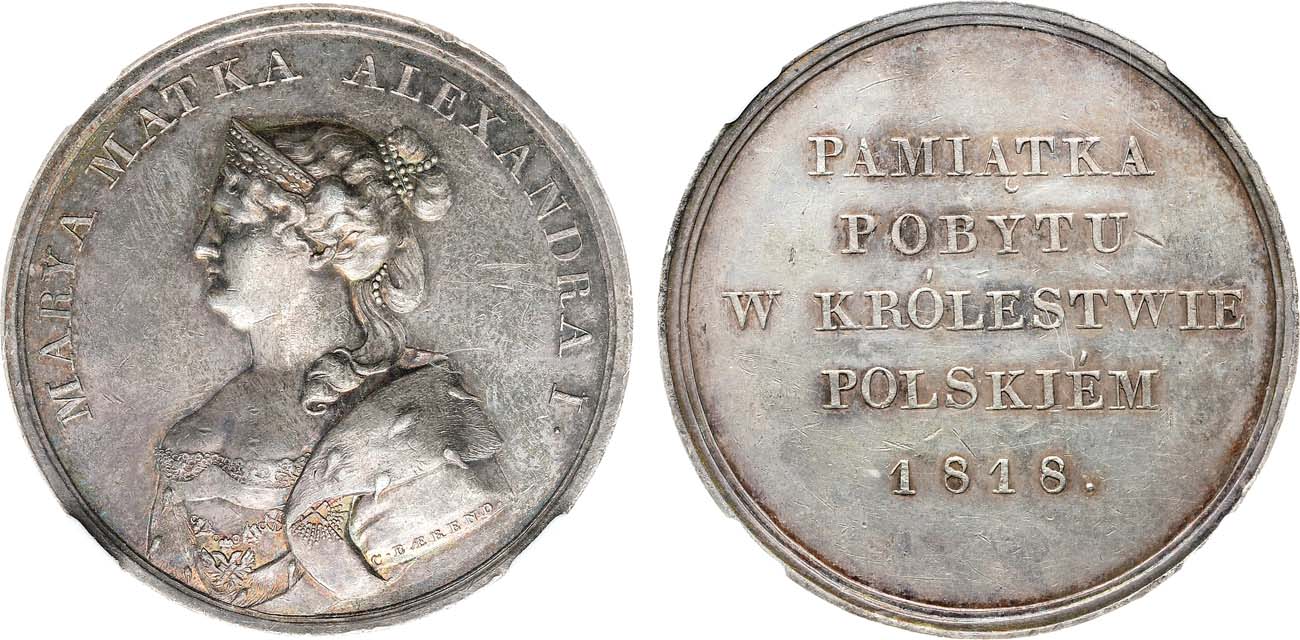 Серебро. Диаметр 40 мм. Варшавский монетный двор. Медальер Карл Эммануил Беренд (аверс – на обрезе левой руки: "C•BAEREND."). Дьяков 411.1(R1). AU 55.