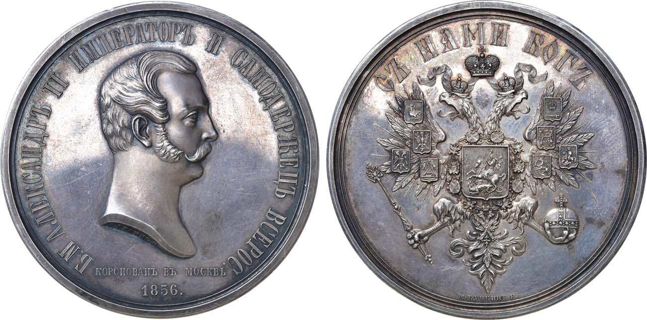 Серебро. 127,64г. Диаметр 65 мм. Санкт-Петербургский монетный двор. Медальеры: аверс – А.П. Лялин (на обрезе: "А.ЛЯЛИНЪ Р."), реверс – М.В. Кучкин (внизу на фоне: "М.КУЧКИНЪ Р:"). Смирнов 603/а. Дьяков 653.1(R1). UNC.