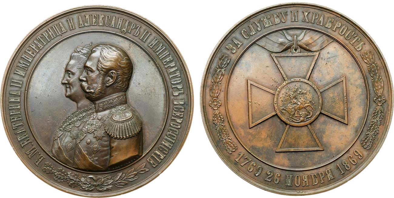 Бронза. 160,53г. Диаметр 71 мм. Санкт-Петербургский монетный двор. Медальеры В.В. Алексеев (на аверсе в обрезе рукава "В.АЛЕКСѢЕВЪ Р."), П.А. Мещеряков (на реверсе внизу у окружности "П.М.Р."). Смирнов 704. Дьяков 760.1(R0). AU/UNC.
