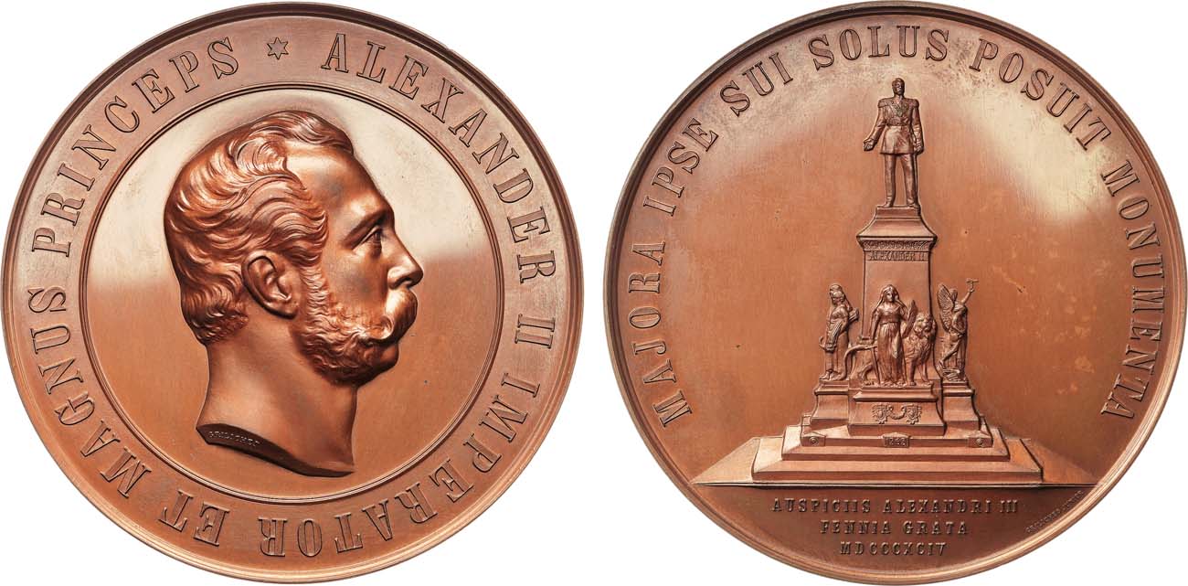 Бронза. 157г. Диаметр 69 мм. Гельсингфорсский монетный двор. Медальер А.А. Грилихес-сын (на аверсе в обрезе шеи "GRILICHES"; на реверсе под обрезом справа у окружности "GRILICHES JUNIOR"). Дьяков 1096.1(R0). MS 65.