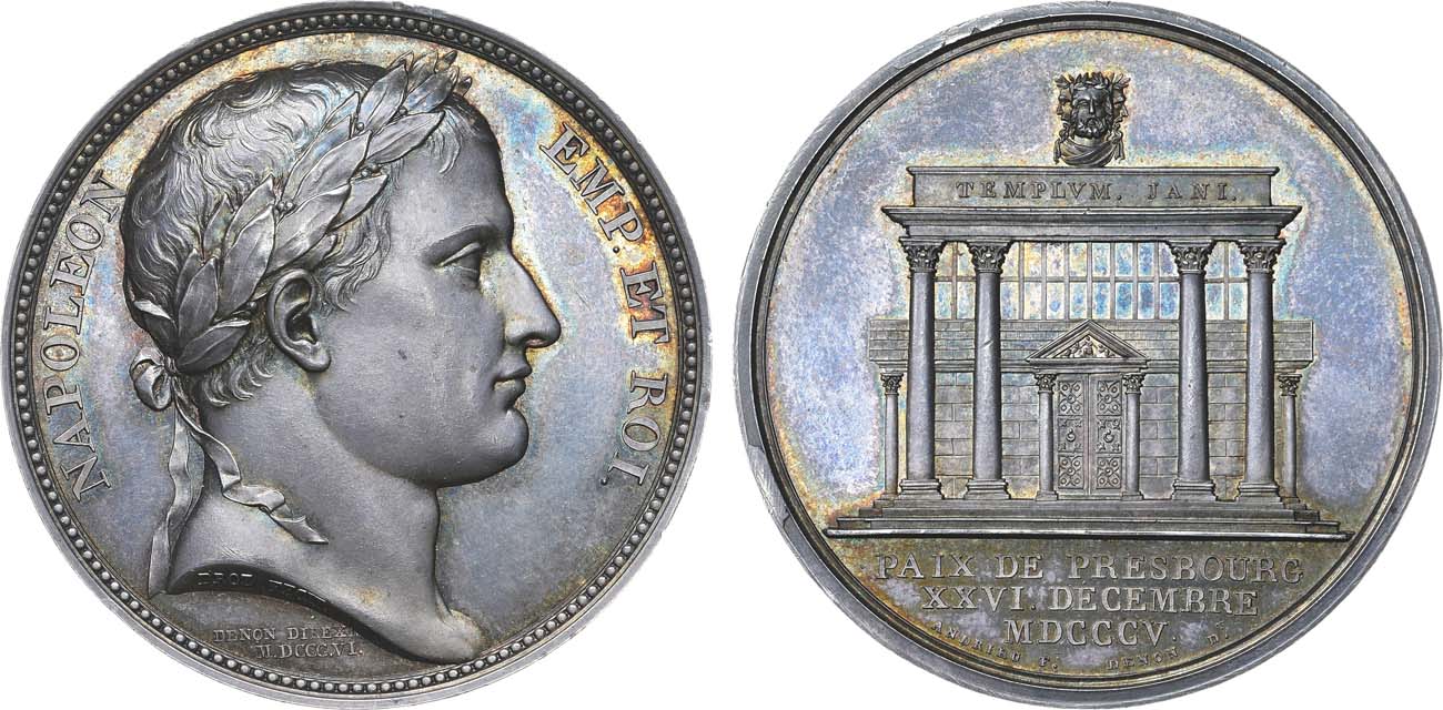 Серебро. 35,35г. Диаметр 40 мм. Франция. Парижский монетный двор. Медальеры: аверс-Жан-Пьер Дроз (в обрезе портрета "DROZ FECIT" (Дроз исполнил), ниже подпись: "DENON DIREXI/ MDCCCVI". ("Денон руководил, 1806"), реверс-Андриё (под линией обреза слева "ANDRIEU F", справа "DENON D"). MS 64.