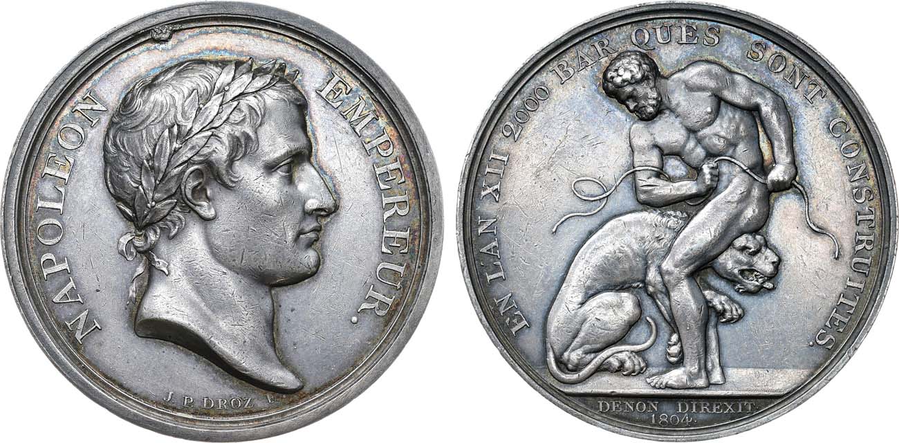 Серебро. 42,89г. Диаметр 40 мм. Франция. Парижский монетный двор. Медальер Дроз (на аверсе под портретом: "J.P. DROZ F", на реверсе под линией обреза "DENON DIREXIT/1804"). Bramsen 320. AU 55.