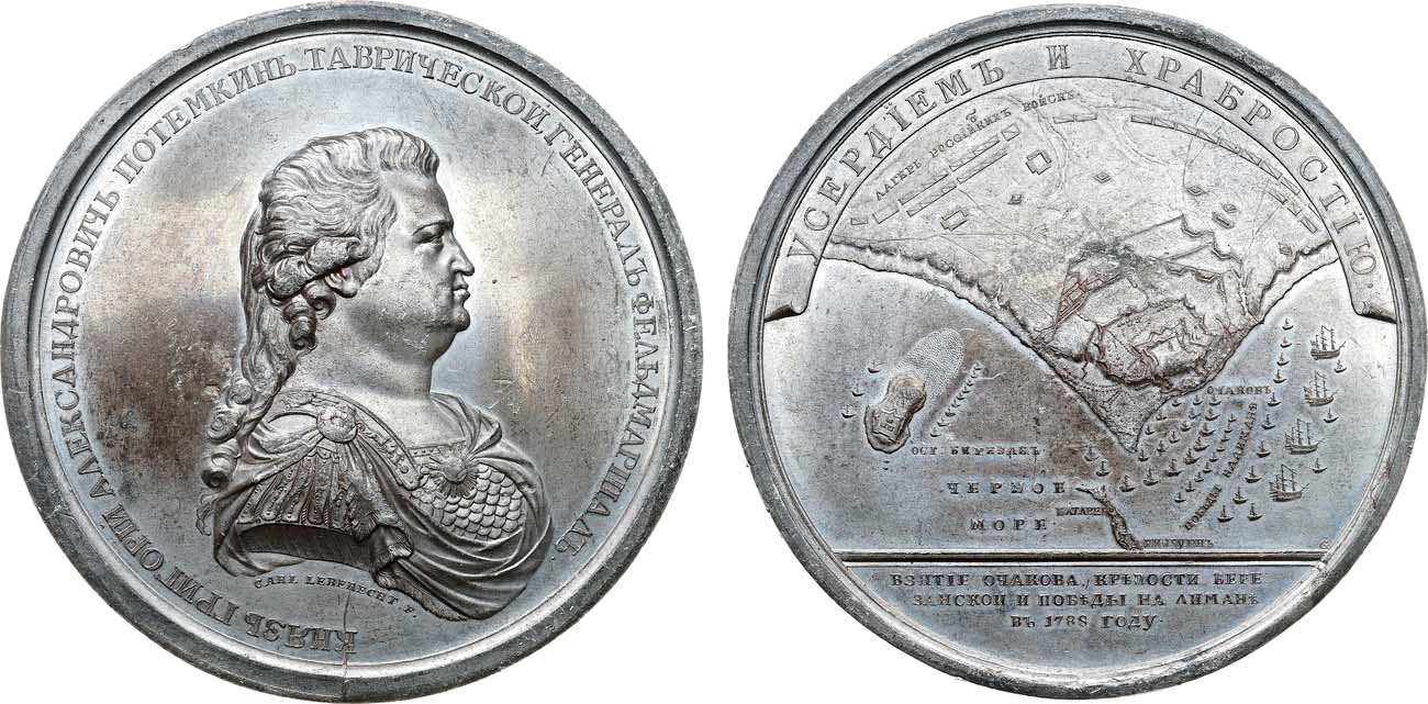 Свинцово-оловянный сплав. 201,77г. Диаметр 92 мм. Санкт-Петербургский монетный двор. Медальер К. Леберехт (на аверсе под портретом "CARL LEBERECHT.F."), Ф.Б. Гасс (справа над обрезом: "G"). Дьяков 212.1. AU.