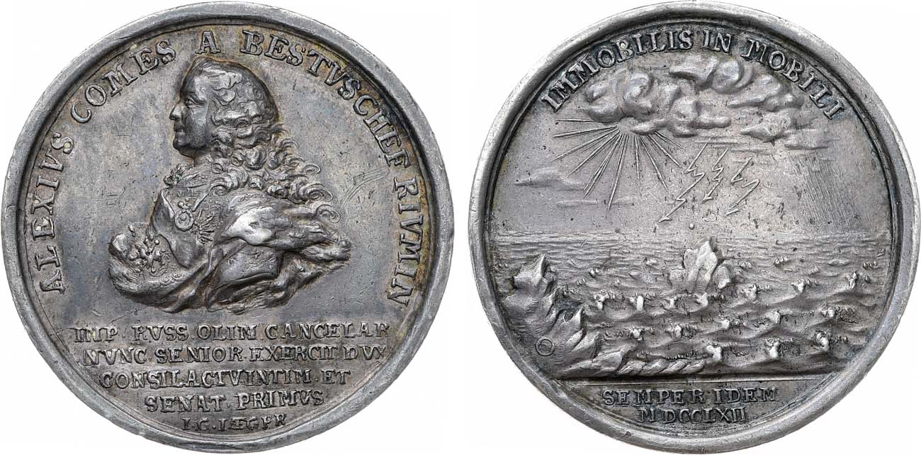 Граф Алексей Петрович Бестужев-Рюмин (1693 - 1766) — русский государственный деятель и дипломат, канцлер Российской империи при Елизавете Петровне (был осужден и отправлен в ссылку в 1758 году, реабилитирован с возвращением всех титулов в 1762 года при Екатерине II.). С 1741 по 1757 годы Бестужев участвовал во всех дипломатических делах, договорах и конвенциях, которые Россия заключила с европейскими державами. Участник бесчисленных придворных и международных интриг, дважды был приговорён к смертной казни.