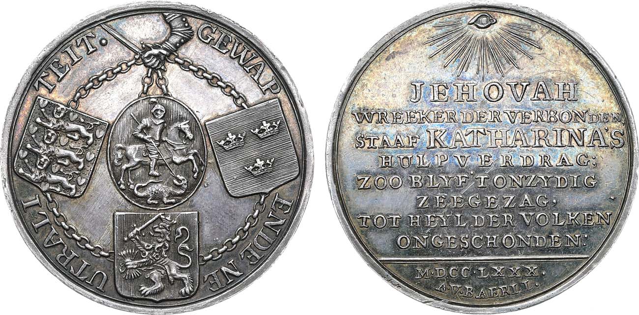 Серебро. 11,42г. Диаметр 31,8 мм. Голландия. Медальер А.В. Берль (внизу под обрезом на реверсе: "A•V•BAERLL."). Reichel 2638(R3). Дьяков 184.2(R2). AU/UNC.