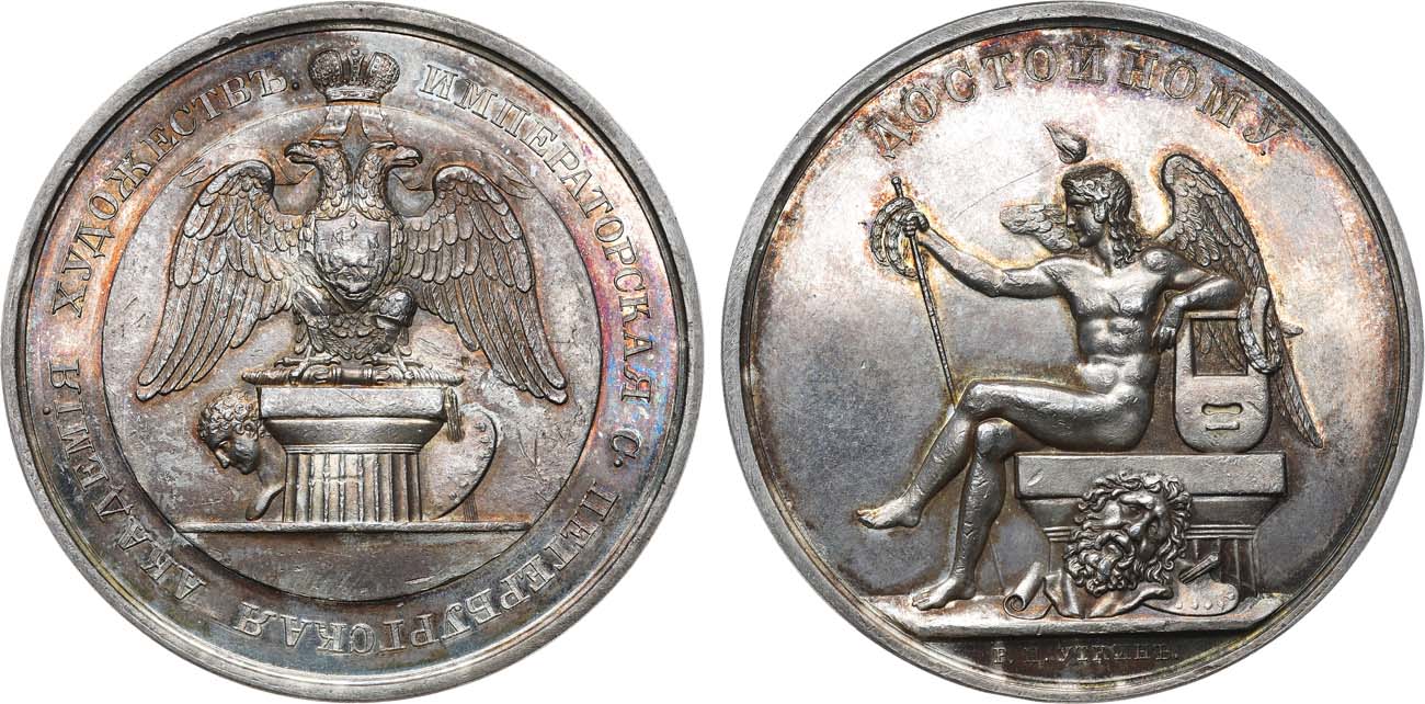 Серебро. 73г. Диаметр 51 мм. Санкт-Петербургский монетный двор. Медальер П. Уткин (на реверсе под линией обреза "Р.П. УТКИН."). Смирнов 459/a. Дьяков 492.1(R2). AU.