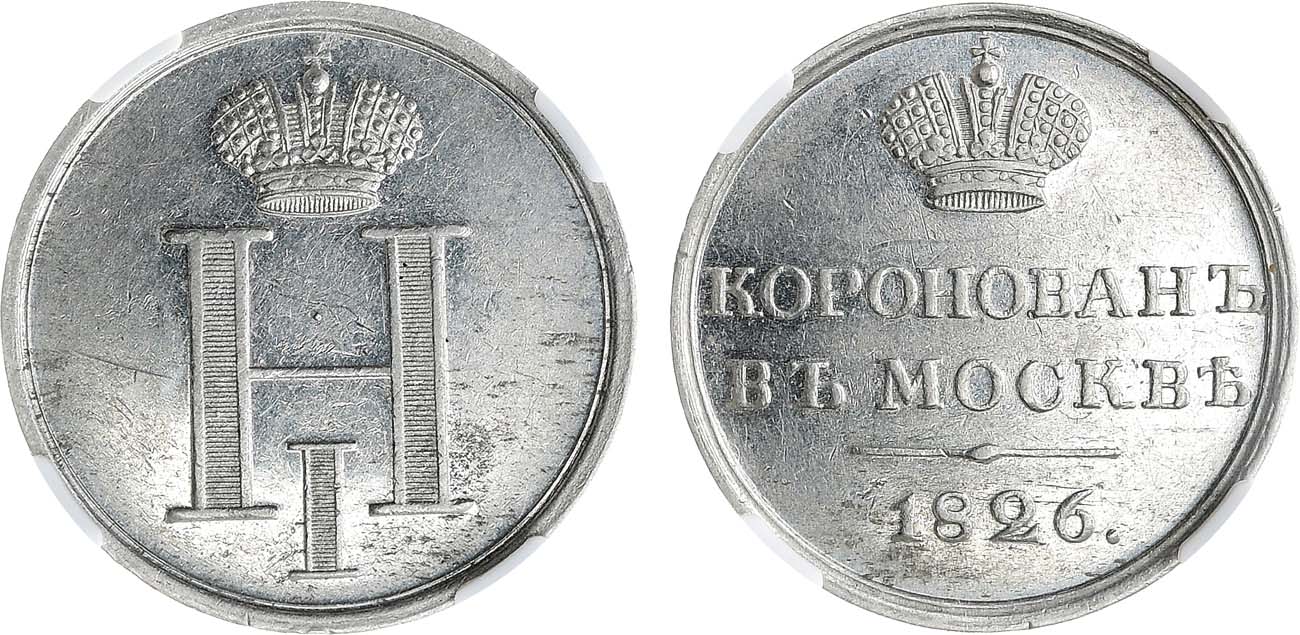 Платина. Диаметр 22 мм. Санкт-Петербургский монетный двор. Руденко 1826.11(R4). Смирнов 414. Дьяков 446.9(R3). MS 60.