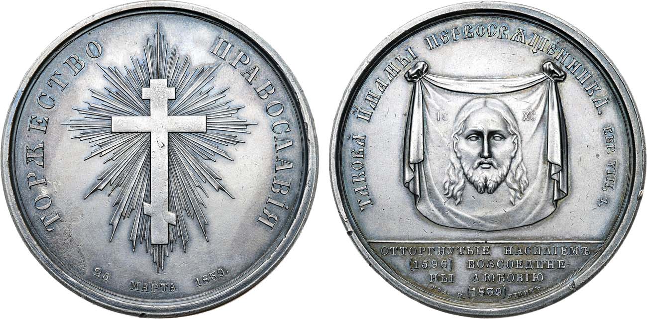 Бронза, серебрение. 114,34г. Диаметр 62 мм. Санкт-Петербургский монетный двор. Медальер П.П. Уткин (аверс: внизу по окружности: "РѢЗ. П. — УТКИНЪ."). Дьяков 550.1(R0). UNC.