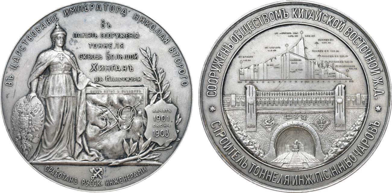 Туннель сквозь хребет Большой Хинган в Манчжурии (3074 м) — самый протяженный из девяти тоннелей, проложенных при строительстве Китайско-Восточной железной дороги. Сооружен в 1901–1903 гг. Обществом Китайско-Восточной железной дороги. Строительство туннеля велось под руководством инженера путей сообщения Н.Н. Бочарова (1857–1914).