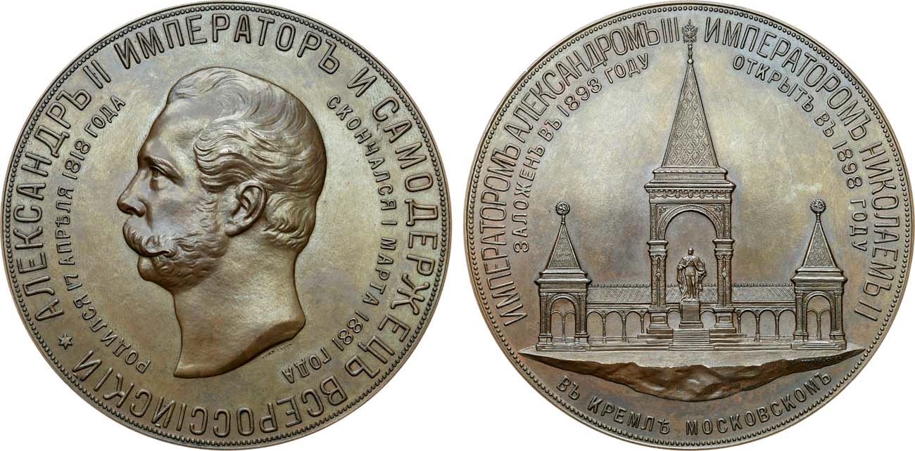 Бронза. 213,74г. Диаметр 78 мм. Санкт-Петербургский монетный двор. Медальер А.А. Грилихес-сын (на аверсе под обрезом "ГРИЛ. СЫНЪ"; на реверсе в обрезе справа "ГРИЛИХ. СЫНЪ Р."). Смирнов 1148/а. Дьяков 1261.1(R1). MS 64 BN.